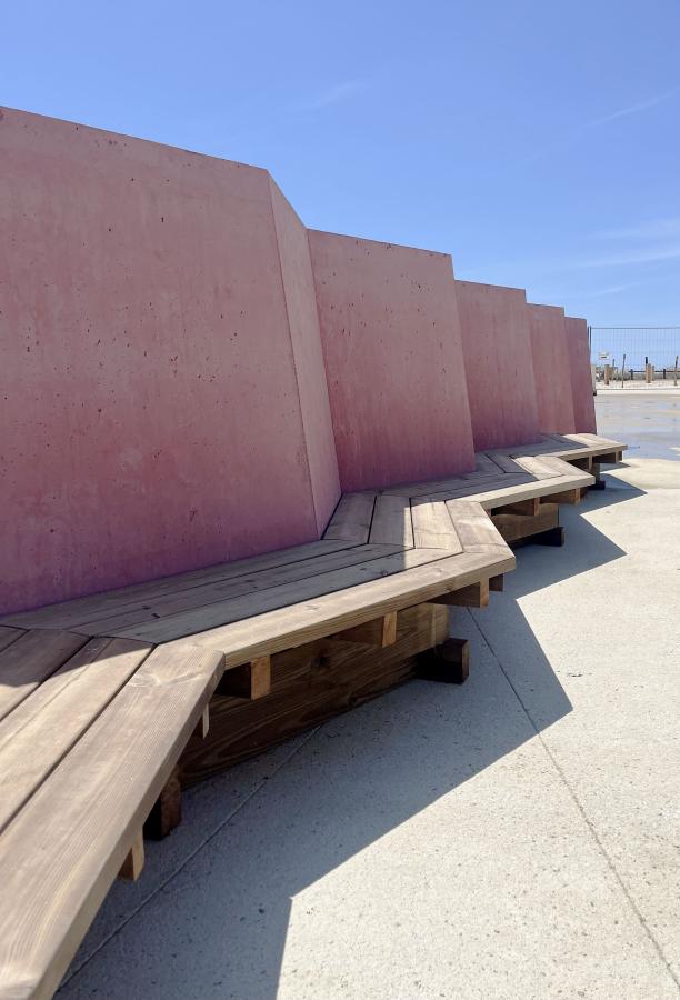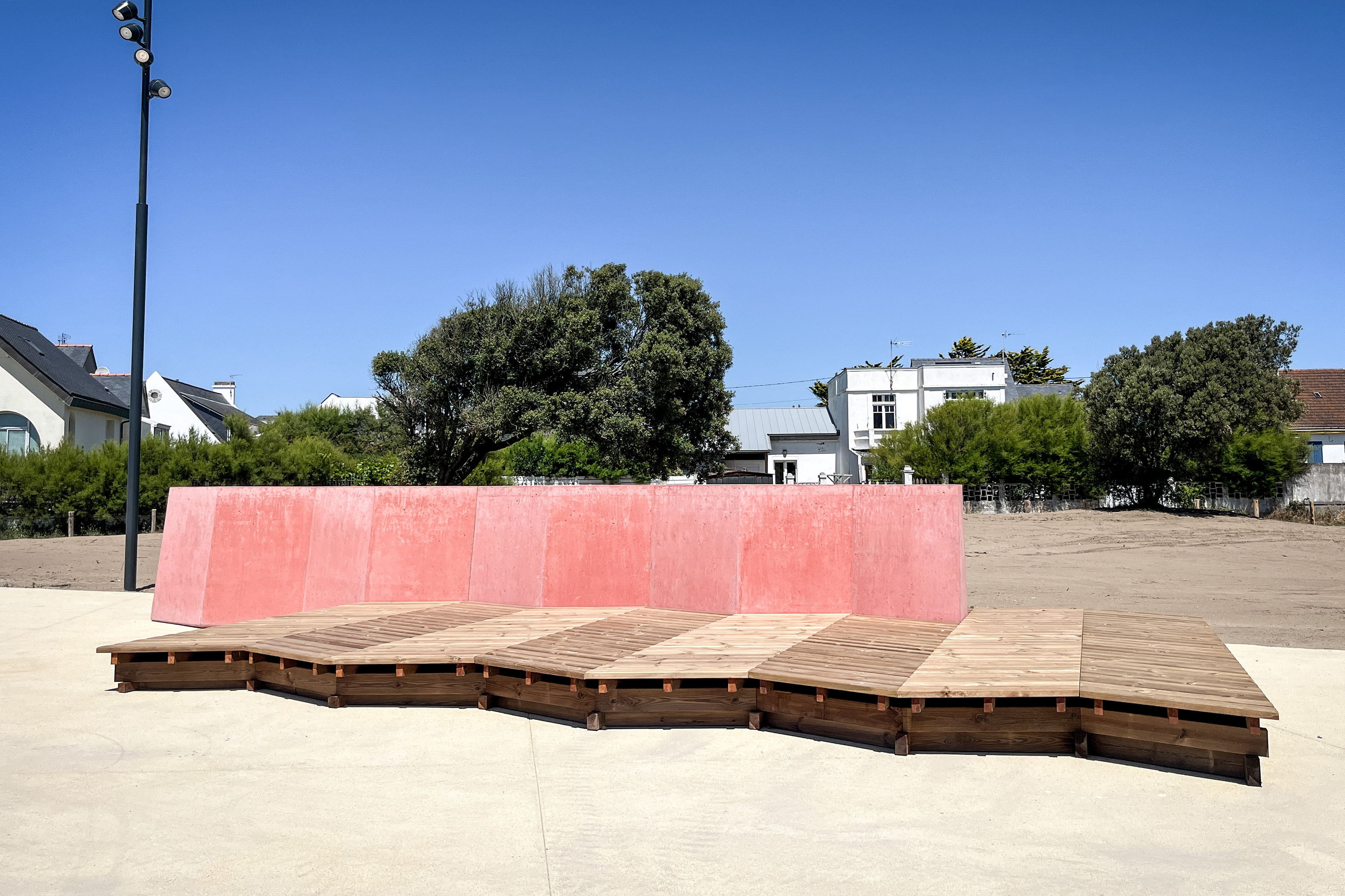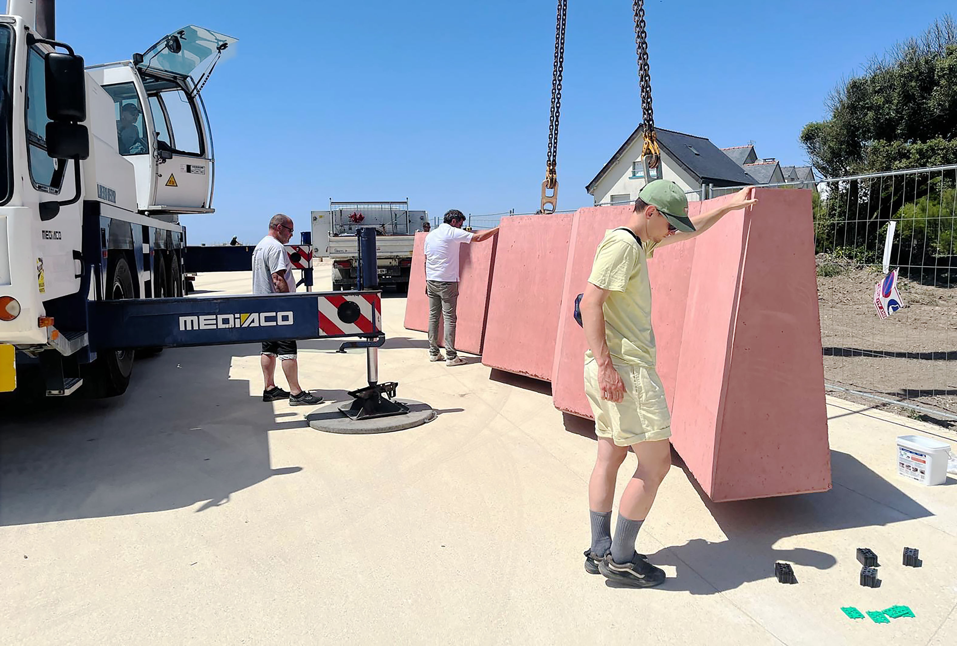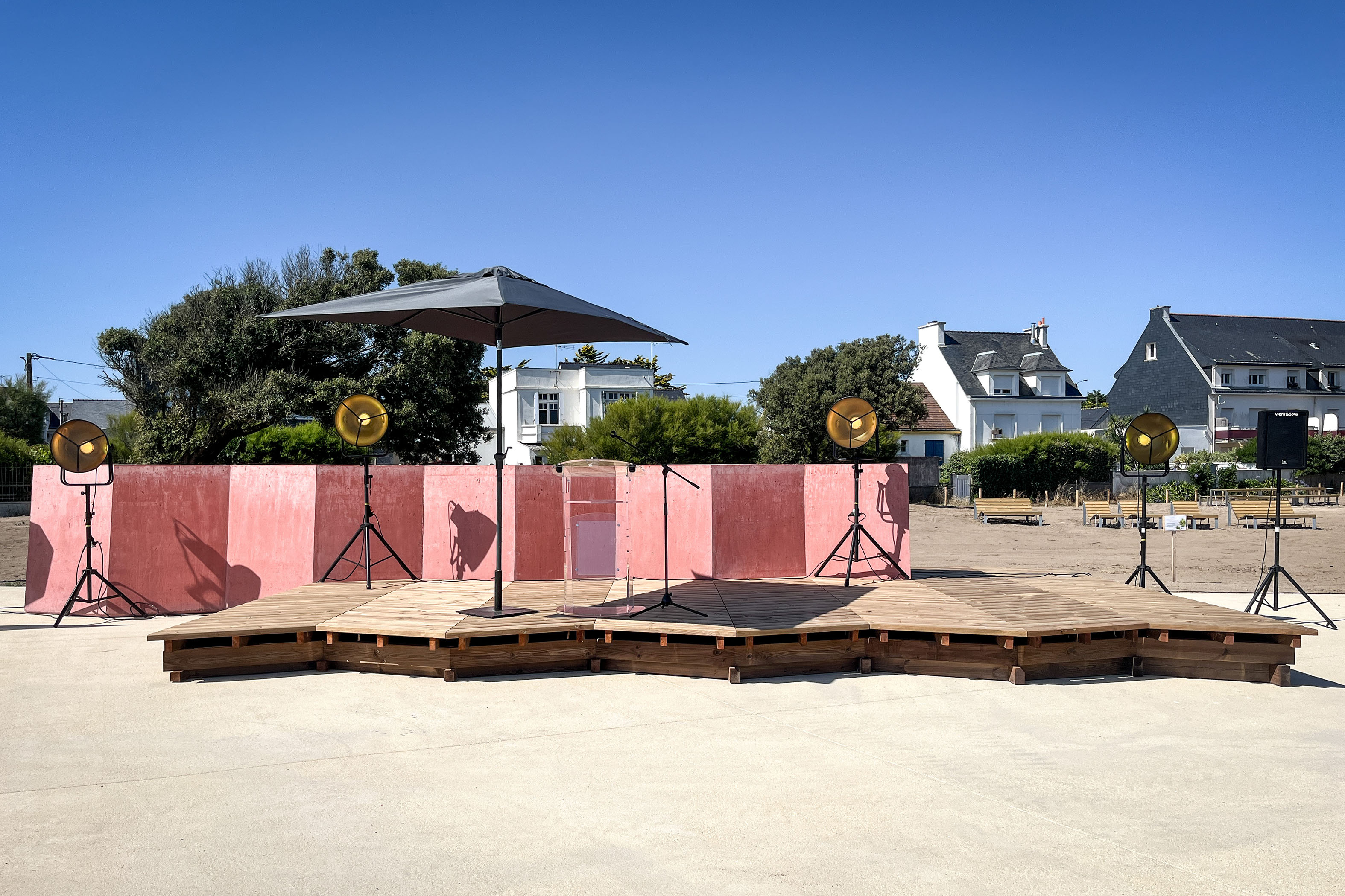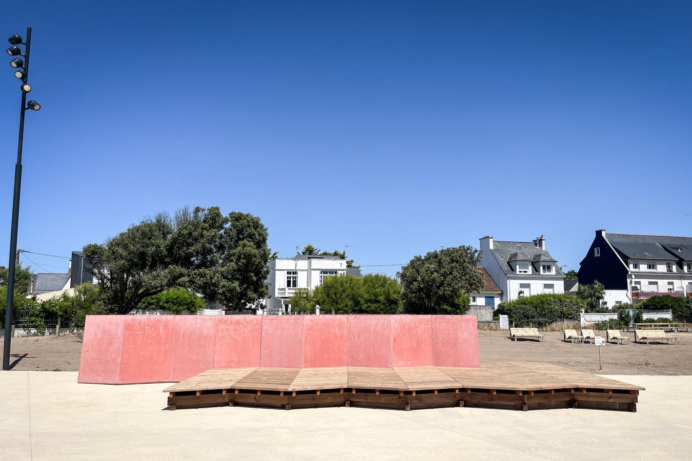 Dans le cadre de l'aménagement du front de mer faisant face au Fort-Bloqué, à Ploemeur (par l'agence de paysage D'ici-là), la municipalité confie la création d'une installation à la formation Fichtre+Quand même.